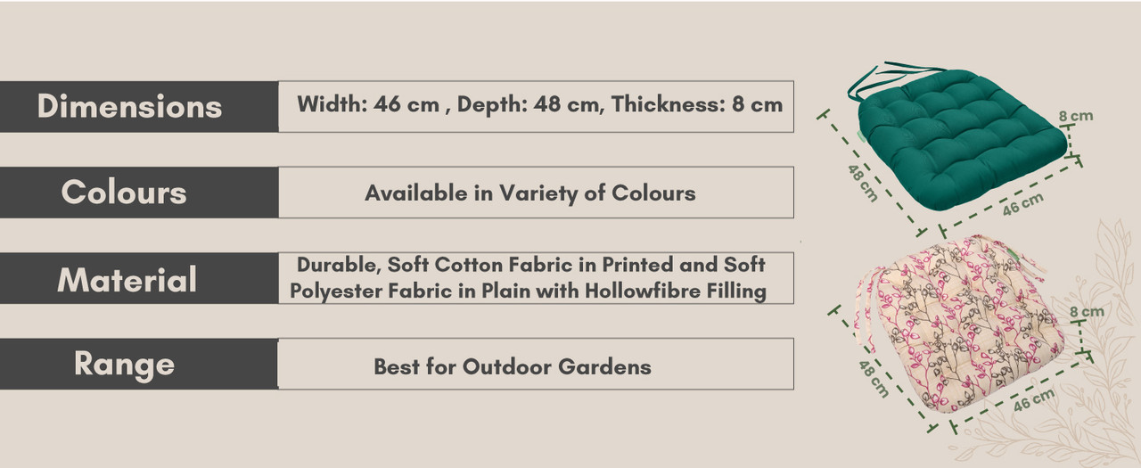 Tufted Printed Seat Pad | Slip Free Garden Chair Cushions | Water Resistant Garden Furniture | Dining Seat Pads with Secure Ties| Cushion